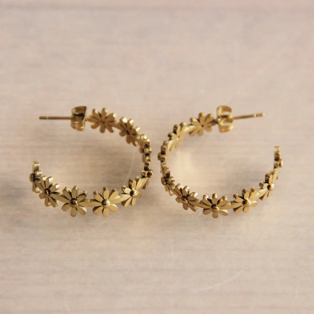 Bazou - Halbe offene Blumen-Creolen aus Edelstahl Gold
