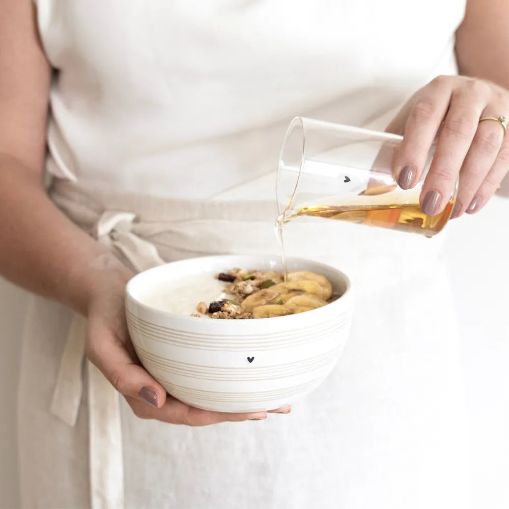 Hol dir die nordische Leichtigkeit direkt auf deinen Frühstückstisch! Dieses bezaubernde Milchkännchen aus Glas von Bastion Collections ist ein echtes Herzensstück für deine Küche. Mit seinem schlichten, transparenten Design und dem liebevollen schwarzen Herz-Detail sorgt es sofort für gute Laune und Hygge-Gefühl beim Kaffeeklatsch ♥.