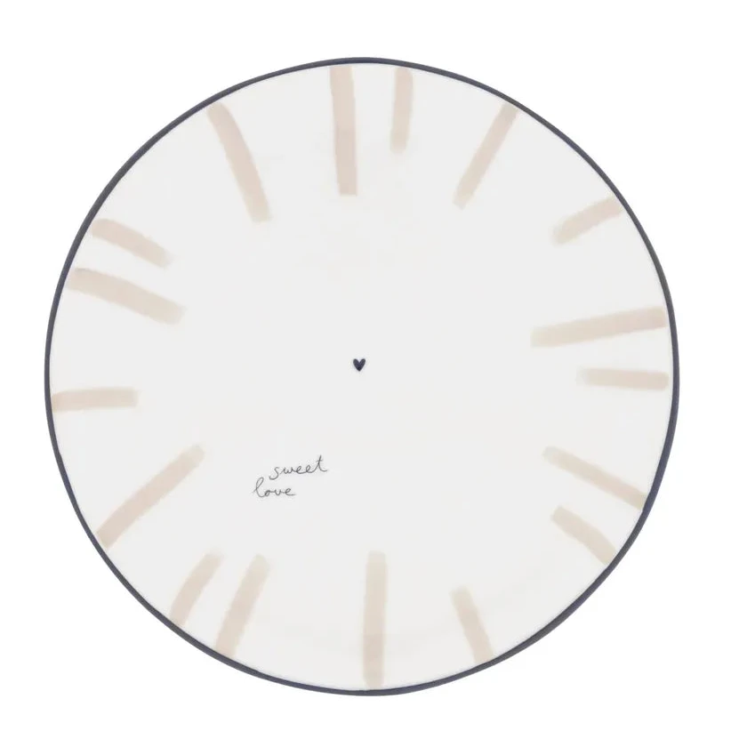 Dieser bezaubernde Frühstücksteller von Bastion Collections bringt mit seinen sanften beigen Streifen und der liebevollen 'sweet love'-Botschaft sofort gute Laune an deinen Tisch. Er ist der perfekte Begleiter für deinen Morgenkaffee, ein kleines Dessert oder ein gemütliches Frühstück, um den Tag mit einer Prise Romantik zu starten. Ein wahres Prachtexemplar für alle, die das Besondere lieben! ♥