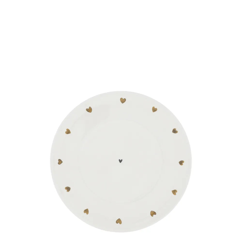 Ein weißer Teller mit einem Bastion Collections – Keksteller Herz darauf.