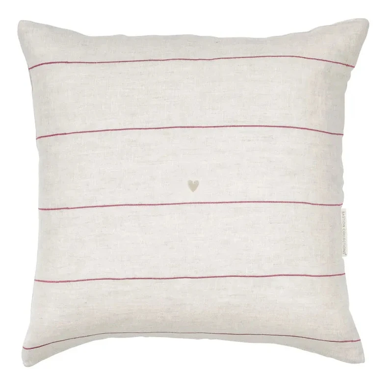 Hol dir pure Romantik und nordische Leichtigkeit in dein Zuhause! Diese bezaubernde Kissenhülle von Bastion Collections vereint klassische Streifen in Natur und Weinrot mit einem liebevoll gestickten Herz-Detail. Ein wunderbares Accessoire, das deinem Sofa oder Lieblingssessel sofort eine extra Portion Gemütlichkeit verleiht ♥.