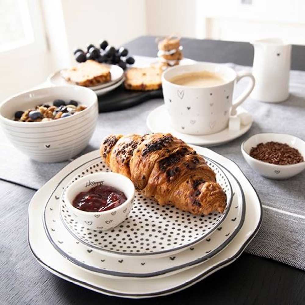Du suchst den perfekten Frühstücksteller oder eine Müslischale für den Start in den Tag? Unsere Keramik wirkt durch ihre organische Form oft wie handbemalt und besitzt diesen charmanten, unperfekten Look. Das Design ist dabei immer stilvoll und unaufdringlich. Besonders beliebt sind unsere Motive mit Streifen (Stripes) oder kleinen Punkten, die für eine lebendige und doch harmonische Tafel sorgen.