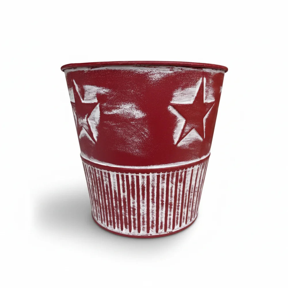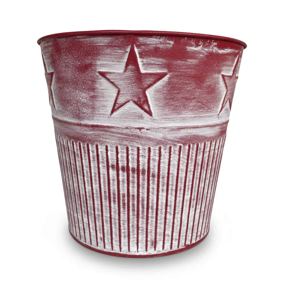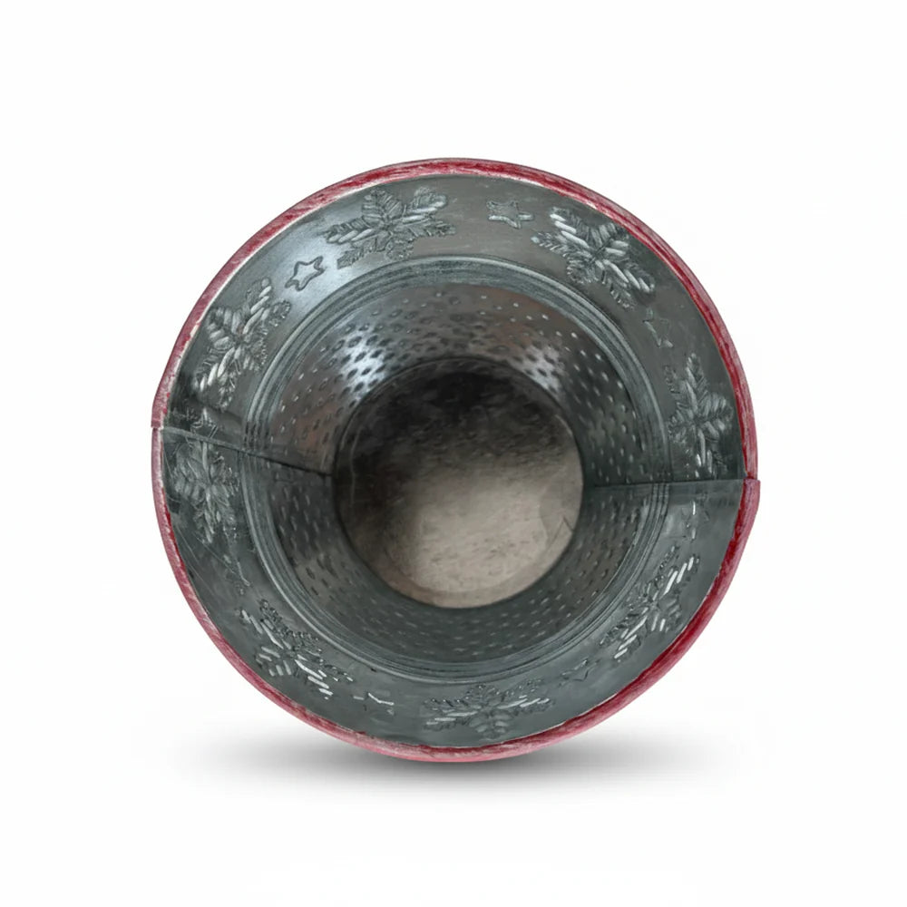 Dieser rote Metall Pflanztopf bringt sofort festliche Stimmung in dein Zuhause! Mit seinen Schneeflocken, Sternen und der edlen Patina passt er perfekt zu deiner Weihnachtsdeko und setzt kleine Tannen oder festliche Gestecke wunderschön in Szene.