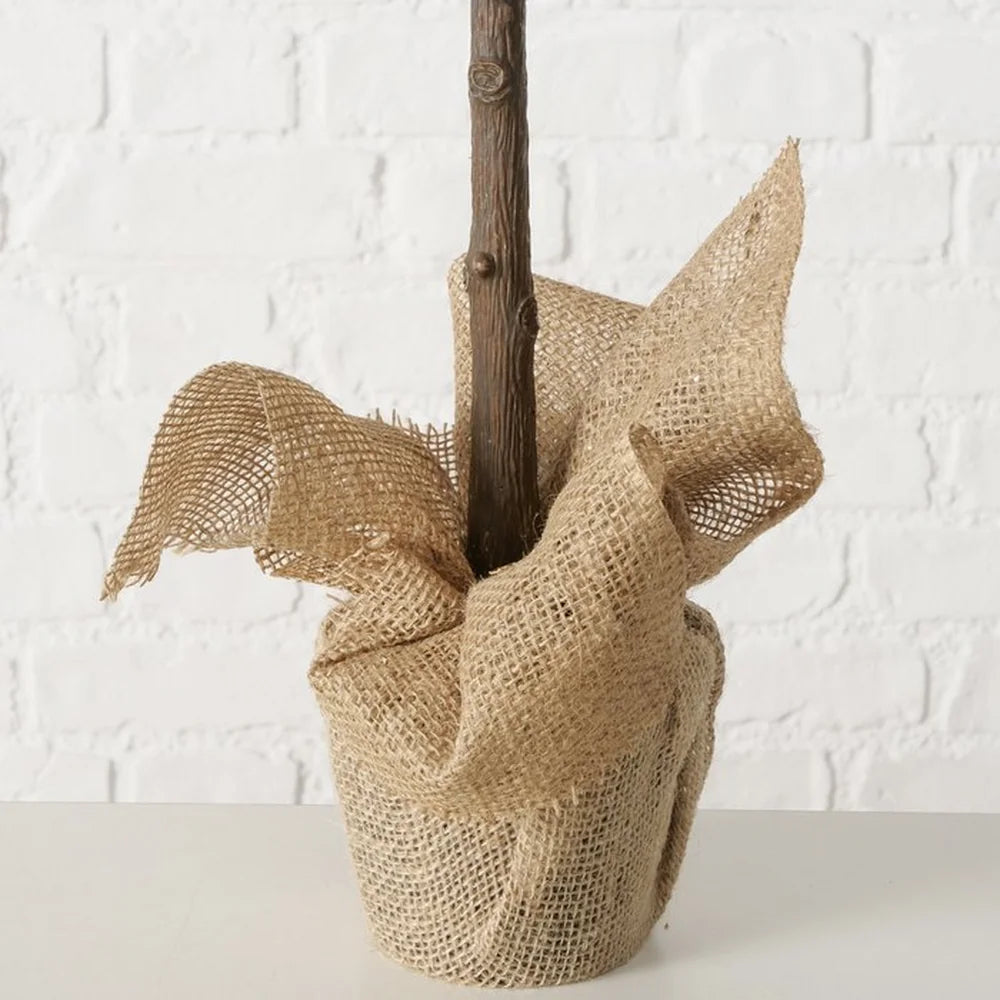 Der Baum ist nicht nur hübsch, er ist auch nachhaltig gedacht. Das stabile Gestell aus Kunststoff und Metall sorgt für lange Freude, während die weichen Jute-Falten dem Ganzen einen rustikalen Akzent verleihen. Mit einer Höhe von 100 cm benötigt er wenig Platz und passt dennoch perfekt zu deinen Lieblingsdekorationen. Die einfarbig gestaltete Baumkrone wirkt elegant und lässt sich vielseitig kombinieren. Dank der hochwertigen Materialien bleibt die Form erhalten, und du kannst ihn Jahr für Jahr wieder verwenden – ruckzuck aufgestellt, schwuppdiwupp verziert!