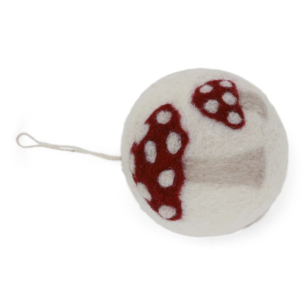 Diese zauberhafte Weihnachtskugel aus weichem Wollfilz wird im Nu zum Lieblingsstück in deiner Winterdeko. Die liebevoll aufgefilzten Fliegenpilze lassen sofort an einen Spaziergang durch den nordischen Wald denken und zaubern dir ein Lächeln aufs Gesicht. Dank ihres natürlichen Materials bringt sie wohltuende Wärme und Gemütlichkeit in dein Zuhause – genau das Richtige, um die Zuckerseite des Lebens zu genießen.