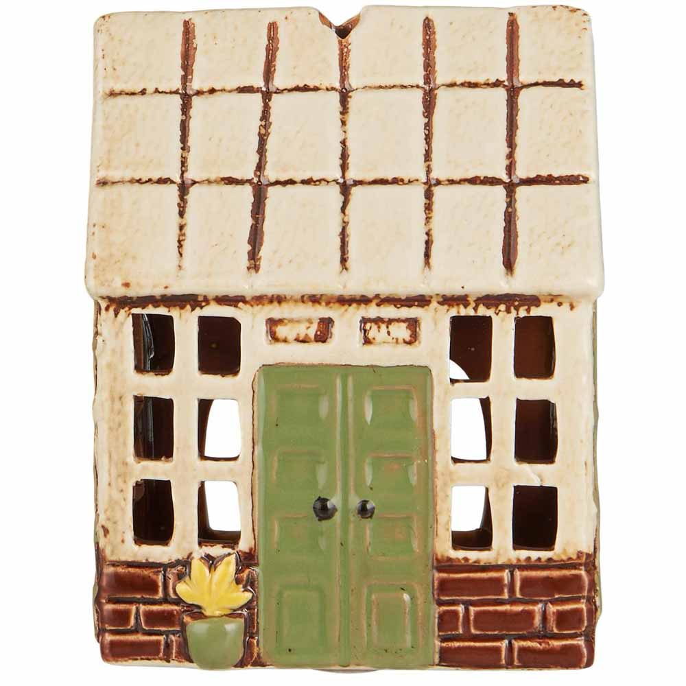 Jedes Häuschen ist ein handgefertigtes Unikat mit rustikalem Vintage-Charme. Die große Fensterfront, die sanft grüne Tür mit feinen Details und der kleine Blumentopf machen es zu einem echten Blickfang. Die bewusst unregelmäßige Oberfläche verleiht dem Häuschen eine authentische, antike Ausstrahlung. Besonders schön wirkt es als Teil eines kleinen „Keramik-Nachbarschafts-Ensembles“.