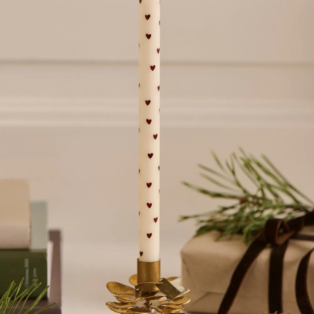 Die herzige Stabkerze bringt Romantik in jede Jahreszeit. Die Reihe kleiner brauner Herzen auf dem cremeweißen Wachs sorgt für liebevolle Details – perfekt für Weihnachten, Valentinstag oder einfach so.