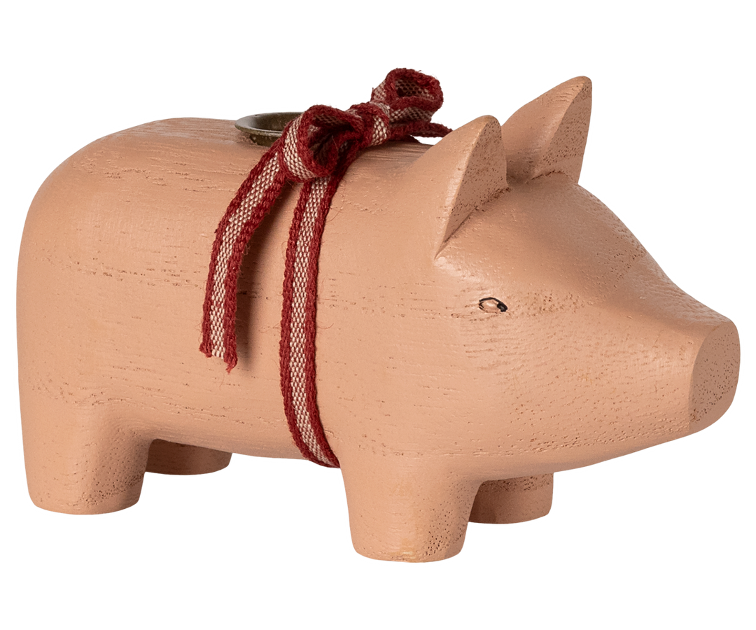 Maileg - Kerzenständer aus Holz Schwein Klein - Rosa