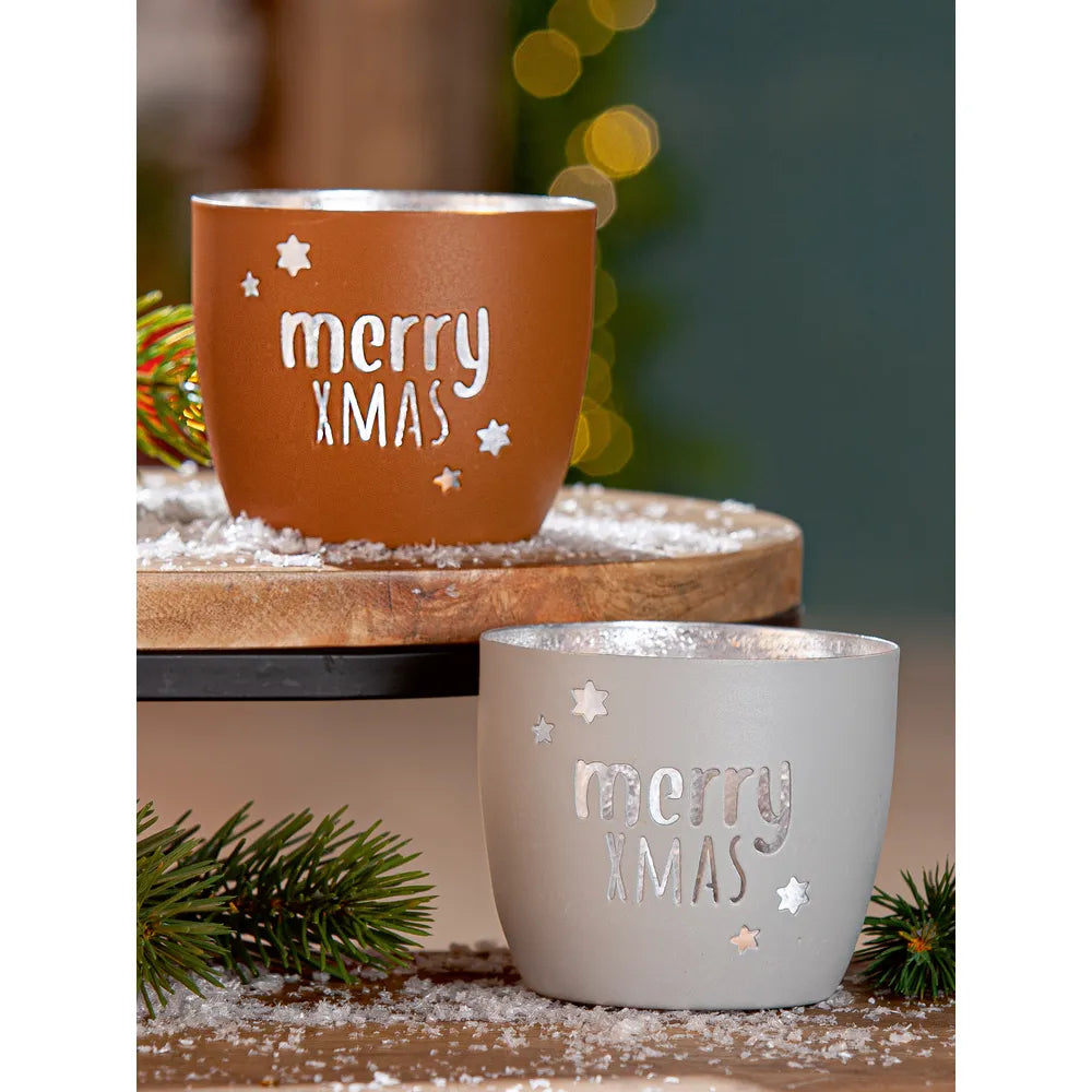 Gilde - Windlicht "merry XMAS" Sternmotiv braun grau