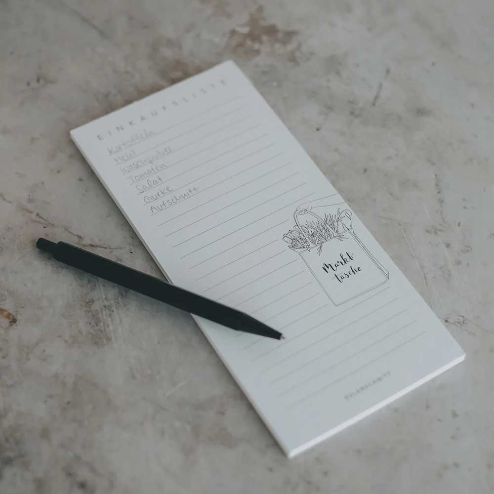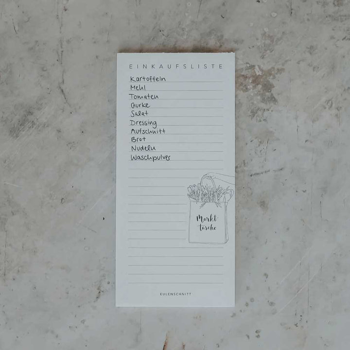 Mit der Einkaufsliste von Eulenschnitt hast Du alles im Blick – kein Vergessen mehr im Supermarkt! Die charmante Illustration einer Markttasche, das liebevoll gestaltete Design und das handliche Format machen das Planen deiner Besorgungen zu einem kleinen Alltags-Highlight.