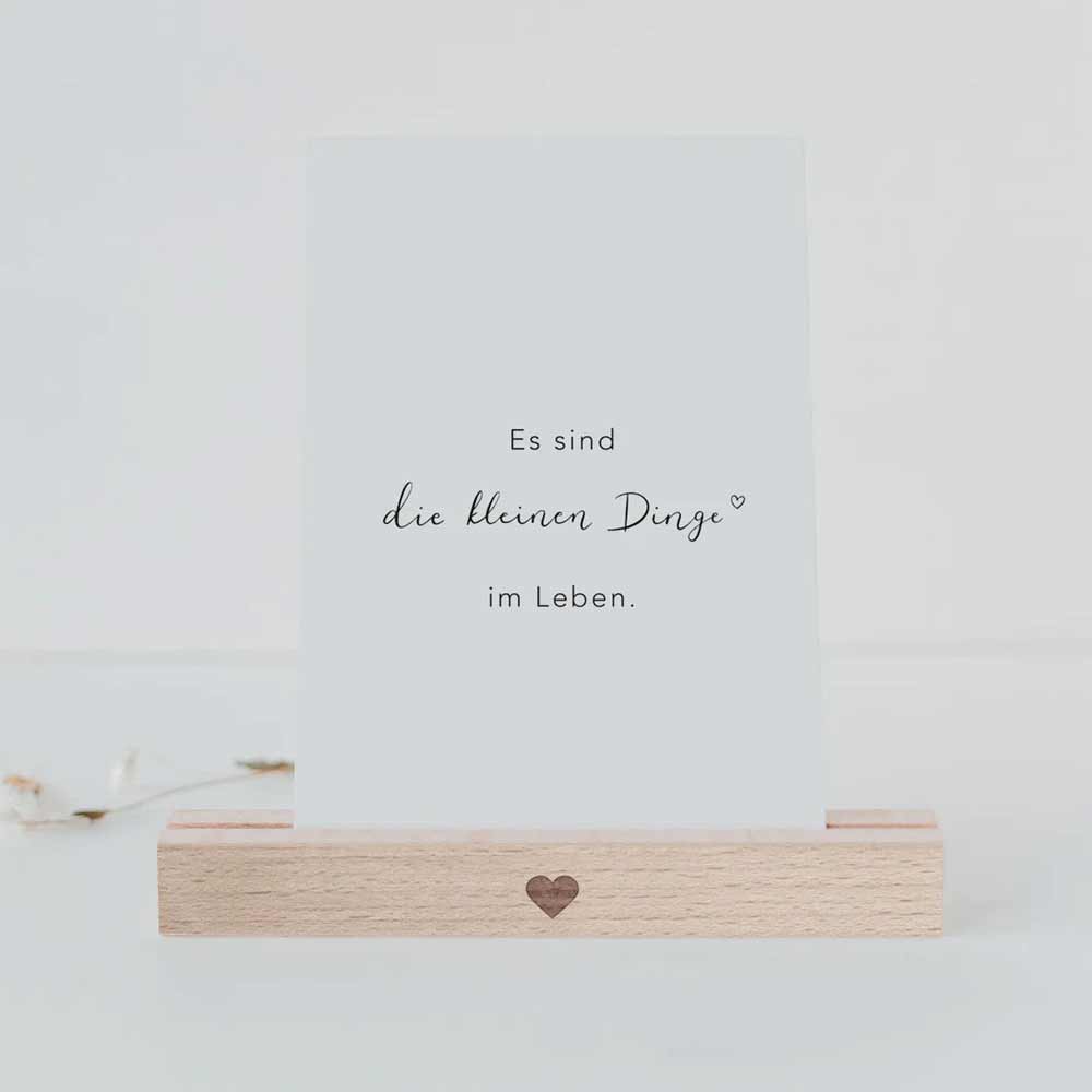 Stelle die Karte in einen schlichten Holzständer auf deinen Schreibtisch, ins Regal oder auf die Fensterbank – sie bringt stilvolle Wärme in jedes Zuhause. Besonders schön: Kombiniere sie mit Trockenblumen oder anderen Naturmaterialien im skandinavischen Stil.