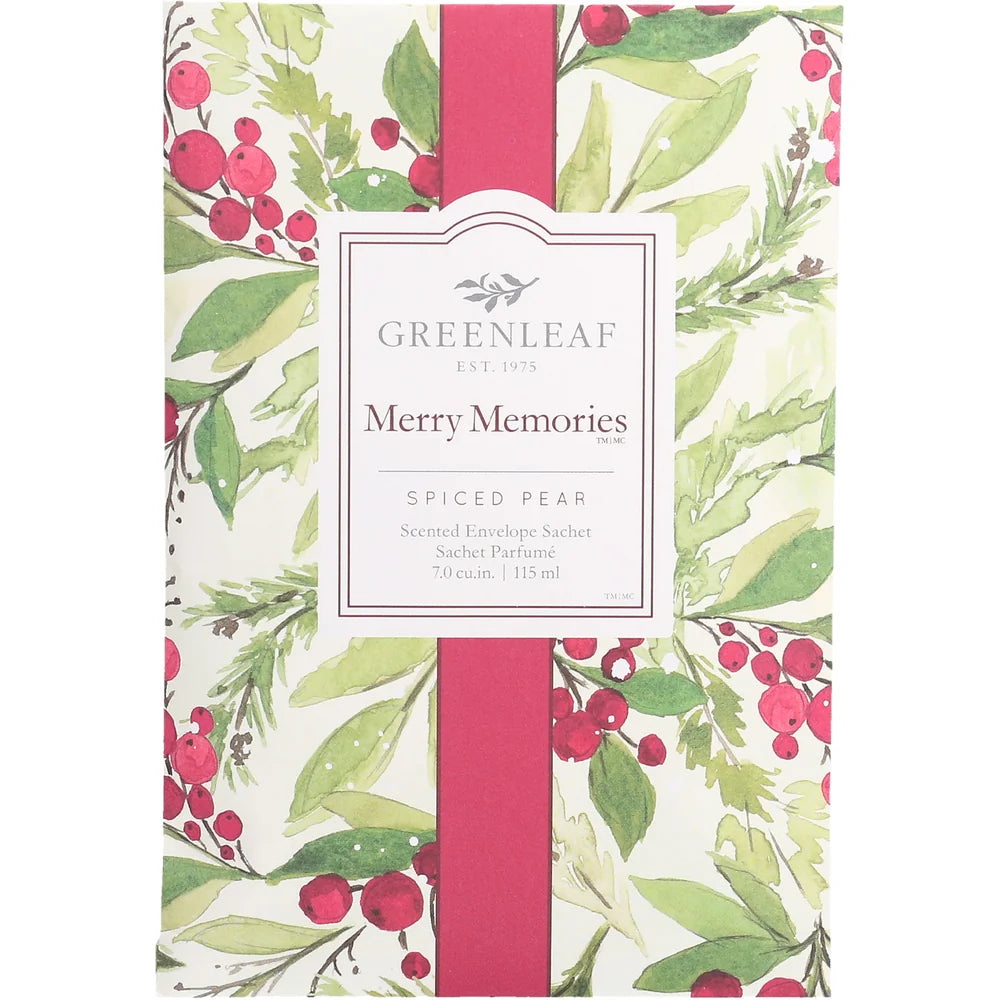 Der Greenleaf Duftsachet Merry Memories bringt den Zauber der Weihnachtszeit direkt in dein Zuhause. Mit einer harmonischen Komposition aus Zimt, Vanille, Gewürznelke und süß-fruchtiger Birne entsteht ein Duft, der Geborgenheit und festliche Wärme verströmt – perfekt, um sich einzukuscheln und die Feiertage zu genießen.