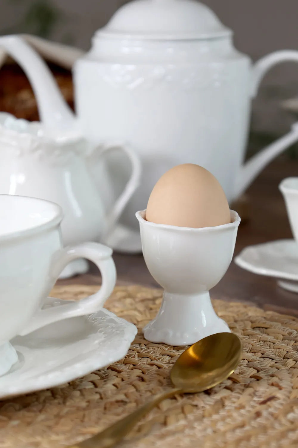 Starte deinen Tag mit einer Prise französischem Charme und purer nordischer Leichtigkeit! Dieser bezaubernde Eierbecher aus der Serie 'Provence' hüllt sich in strahlendes Weiß und macht deinen morgendlichen Frühstückstisch zu einem echten Highlight. Ein kleines, wunderbares Prachtexemplar für den Genuss deines geliebten Sonntags-Eis ♥