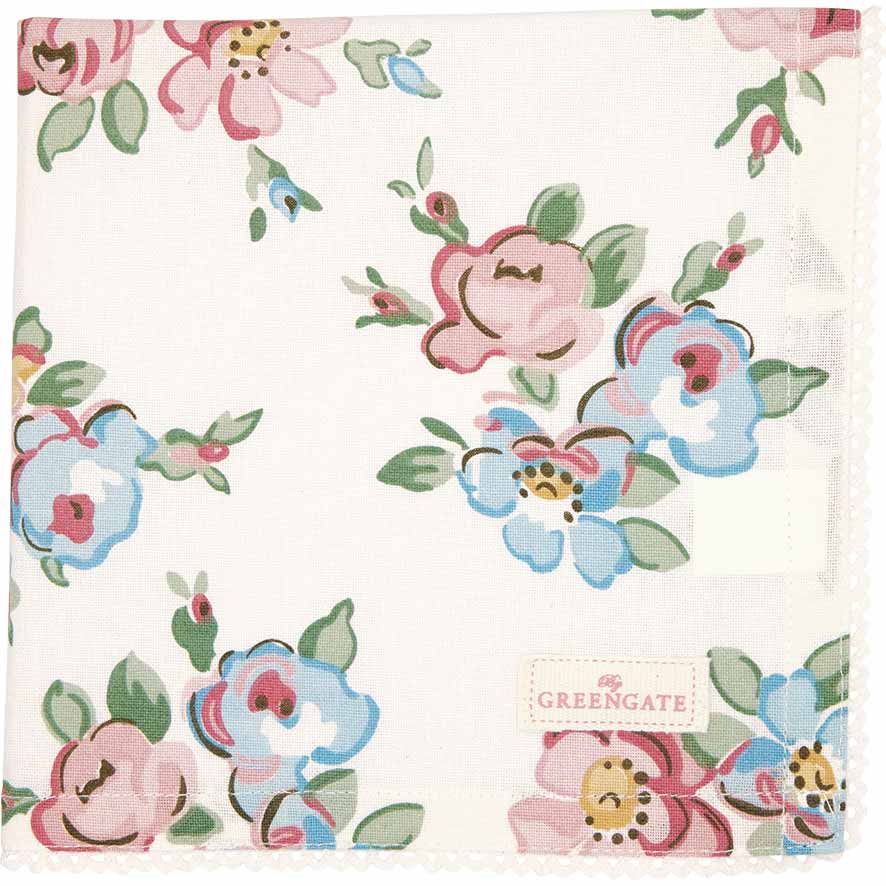 Mit der Madison Stoffserviette bringst du den Frühling auf deinen Tisch – ganz egal, welche Jahreszeit draußen herrscht. Das helle Tuch ist mit großen, pastellfarbenen Blüten in Rosé, Himmelblau und Salbeigrün geschmückt. Jede Blüte wirkt wie mit Aquarellfarben gemalt und verbreitet eine fröhliche Stimmung. Die zarte Spitzenbordüre gibt dem Quadrat eine feminine Note.