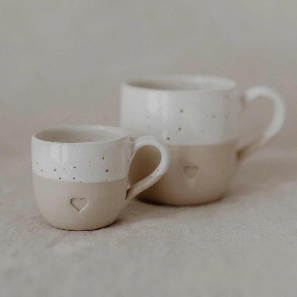 Ideal für den täglichen Gebrauch oder als Teil eines charmanten Tassen-Sets, unsere Becher sind nicht nur praktisch, sondern auch ästhetisch ansprechend. Sie sind robust, langlebig und spülmaschinengeeignet, was sie zu einem perfekten Begleiter für jeden Kaffee- oder Kakao-Liebhaber macht.