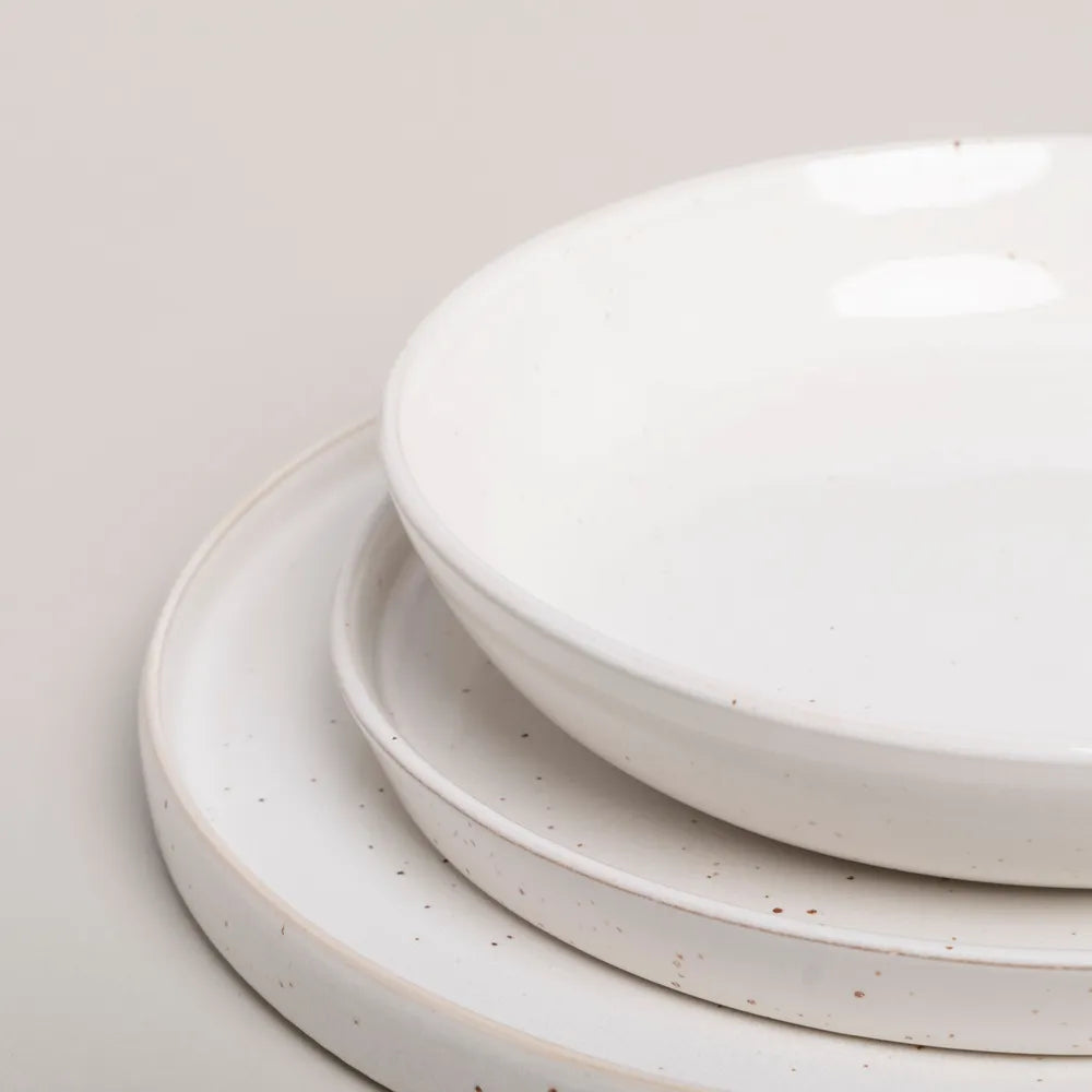 Kombiniere die Teller mit Leinenservietten in warmen Erdtönen und frischen Wiesenblumen für einen herrlichen Sonntags-Brunch im Scandi-Stil.