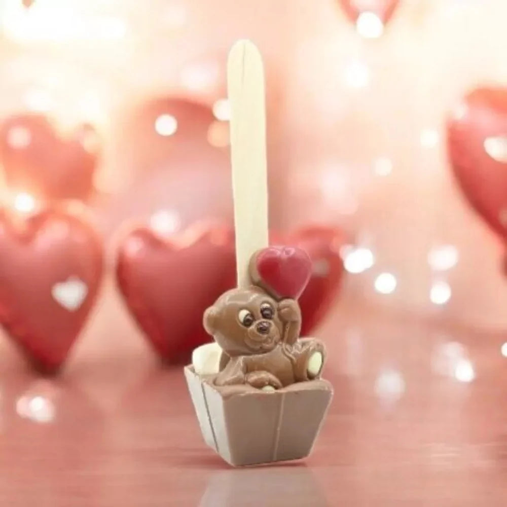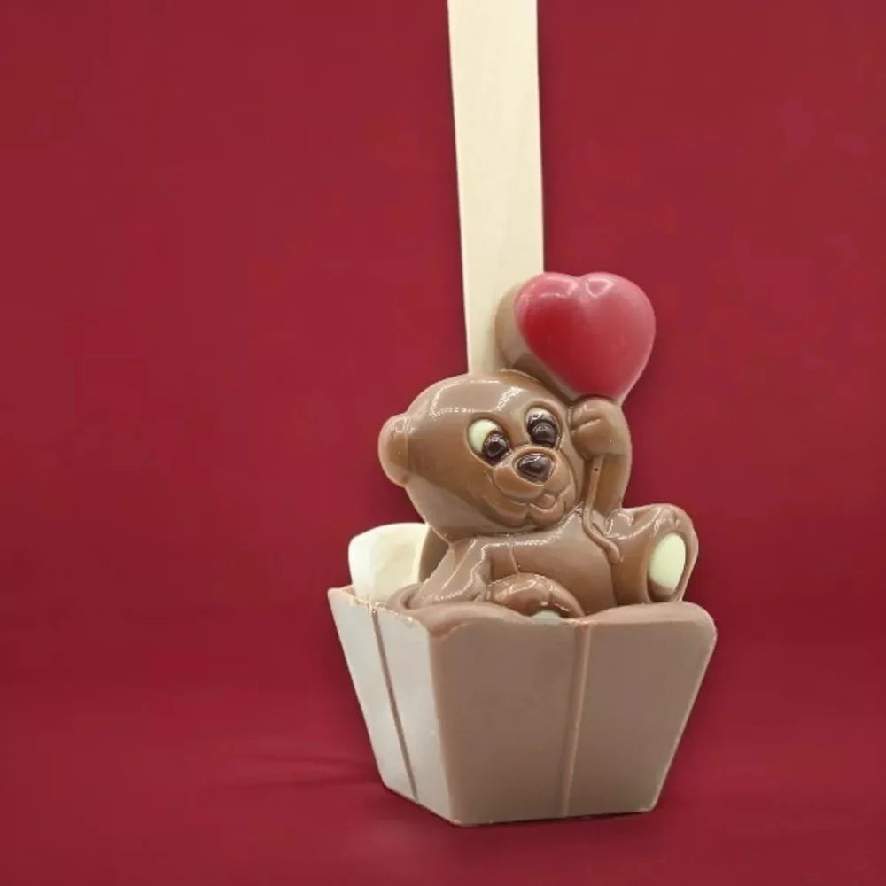 Mit diesem liebevoll gestalteten Schokoladenlöffel wird das Zubereiten von heißer Schokolade zu einem kleinen Ritual. Ein putziger Teddybär aus handgegossener Milchschokolade sitzt auf dem Schokowürfel und hält ein leuchtend rotes Herz – schon beim Anblick wird einem warm ums Herz. Schmilzt der 55‑g‑Block langsam in heißer Milch, entsteht ein cremiges Getränk mit reichem Kakaogeschmack. Ob als romantischer Akzent zum Valentinstag oder als süße Belohnung an kalten Tagen – dieser Löffel sorgt für Genuss und zaubert ein Lächeln auf jedes Gesicht.