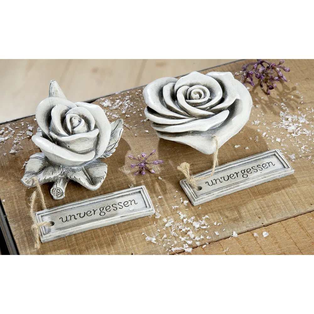 Gilde - Gedenkdeko Blume "unvergessen" Schriftzug grau