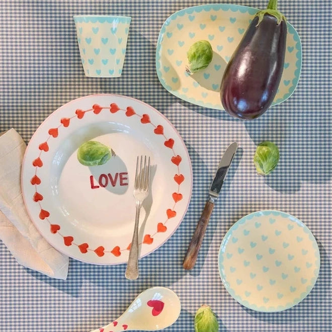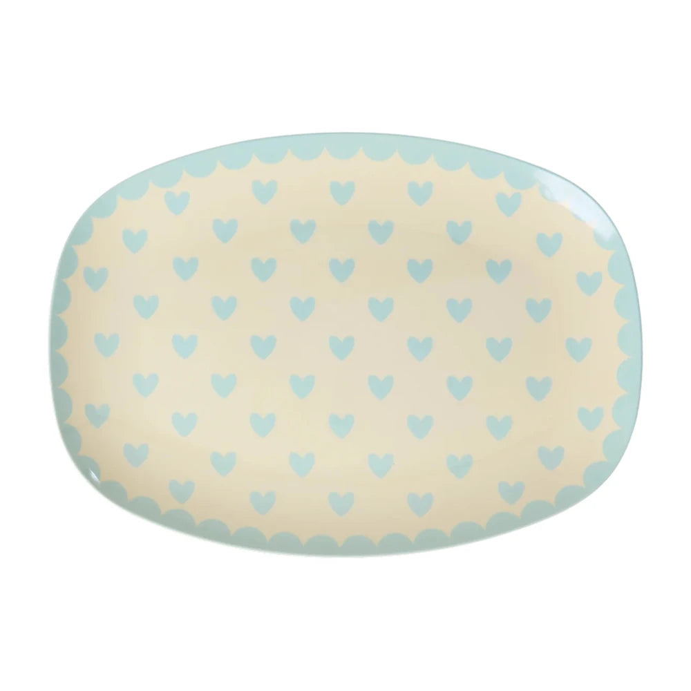 Rice - Rechteckige Beilagenteller Lieblingsherzen Blau Small