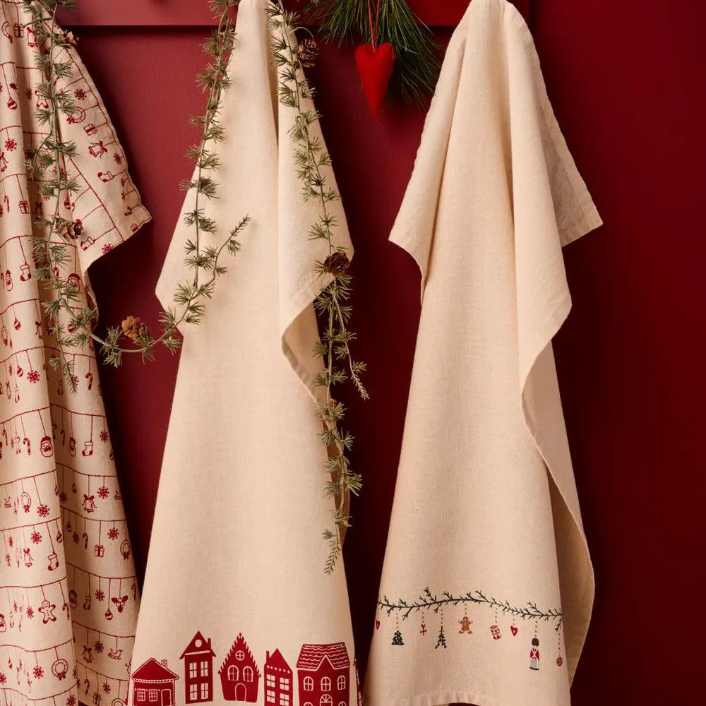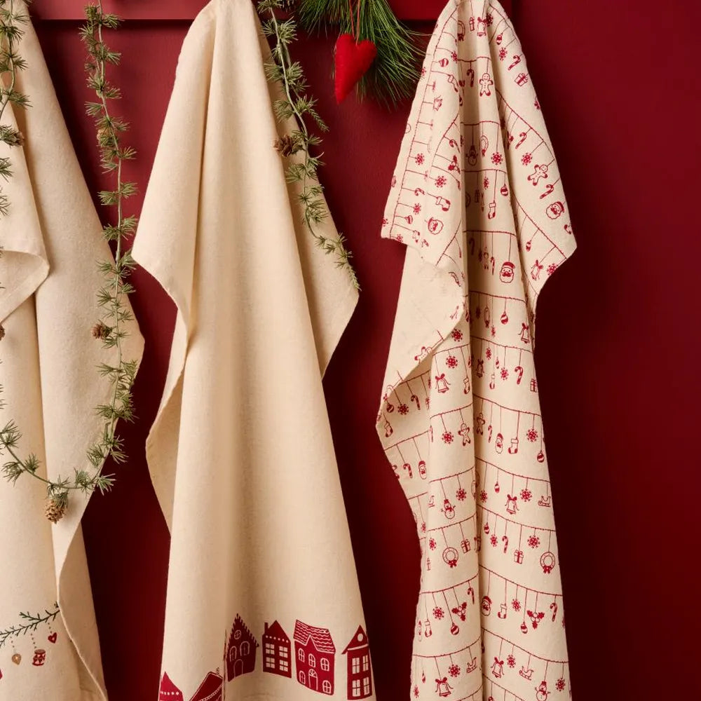 Das Geschirrtuch „Sally“ bringt mit seinem kräftigen Rot und den fröhlichen weißen Häusern einen Hauch Kleinstadtromantik in deine Küche. Es sorgt sofort für Wohlfühlatmosphäre.