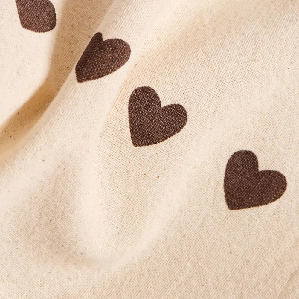 Dieses liebevoll gestaltete Geschirrtuch zaubert dir beim Abtrocknen ein Lächeln ins Gesicht. Die Reihe von braunen Herzen auf dem naturfarbenen Stoff sorgt für eine warme, einladende Atmosphäre in deiner Küche – und erinnert daran, wie schön das kleine Glück im Alltag sein kann.