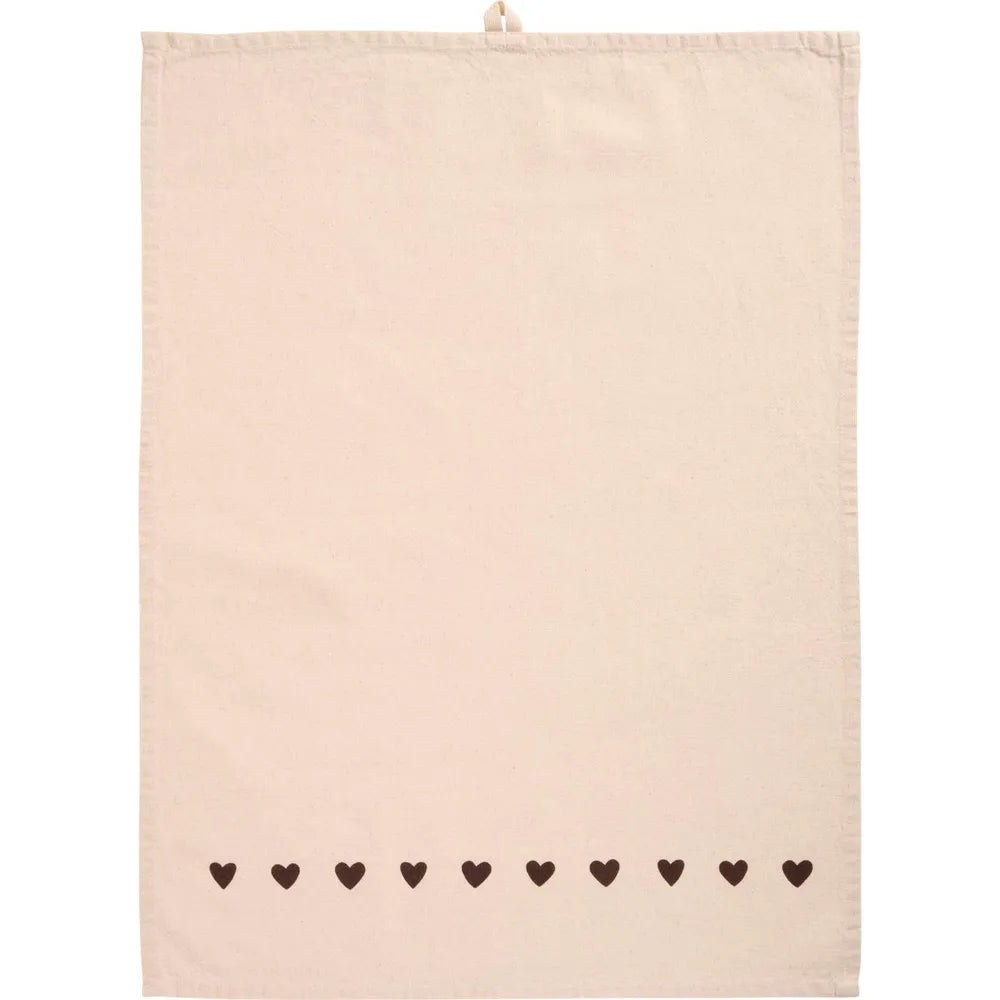Die Kombination aus hochwertiger Baumwolle und der verspielten Herzbordüre verleiht dem Tuch eine besondere Ausstrahlung. Dank seiner natürlichen Farbe und der feinen Struktur ist es nicht nur saugfähig und strapazierfähig, sondern passt auch zu vielen Wohnstilen von skandinavisch bis Landhaus.