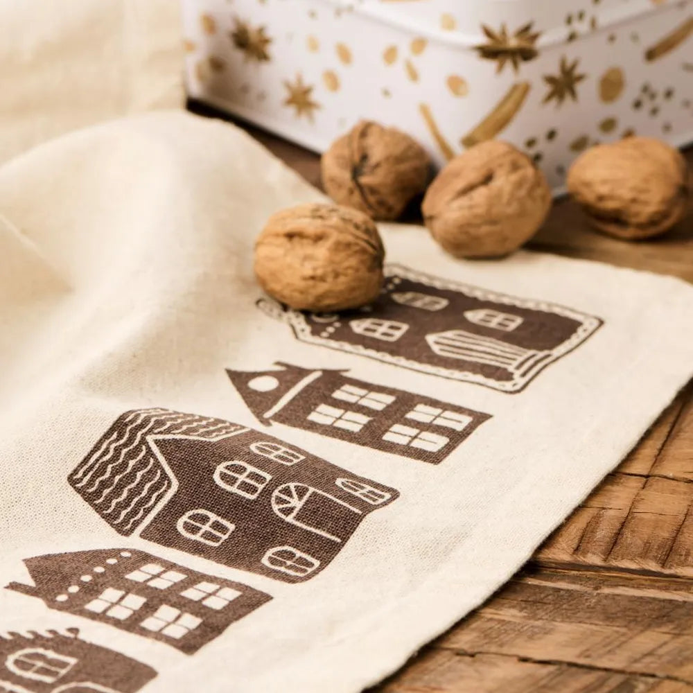 Das 50 × 70 cm große Tuch besteht aus 100 % Baumwolle, die saugfähig und strapazierfähig ist. Die detaillierten Häusermotive wirken wie kleine Illustrationen und lassen das Herz von Nostalgikern höher schlagen. Eine Aufhängeschlaufe sorgt für Ordnung. Bei 40 °C waschbar bleibt die Farbe lange erhalten.