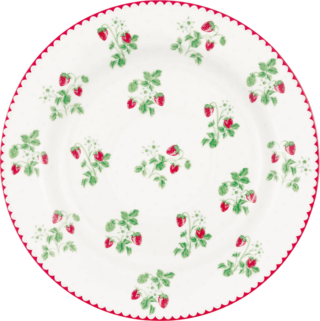 Sag Hallo zu deinem Sommermoment! GreenGate Berry bringt die Zuckerseite des Lebens direkt auf den Tisch: zarte Erdbeer‑Ranken, kleine Blüten, feine Pünktchen – und als Tüpfelchen auf dem i der charakteristische rote Wellenrand. Das Ergebnis: nordische Leichtigkeit, die nach Gartenkaffee, Picknick und Lieblingstörtchen aussieht. ♥