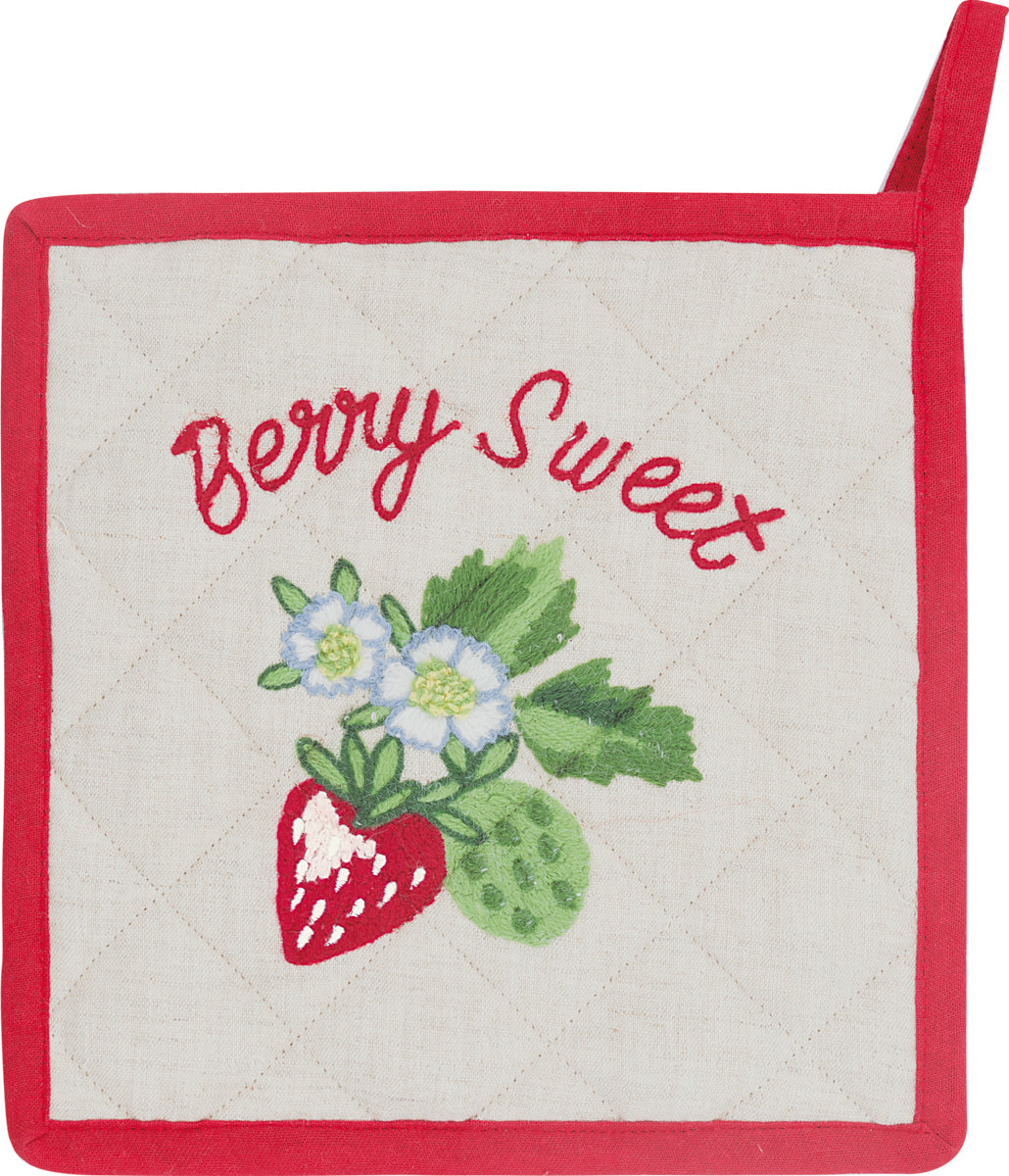 Backen, Pflücken, Einmachen: Schürzen für Groß & Klein, passende Tücher und der Ofenhandschuh begleiten dich durch die süßeste Zeit des Jahres. Die „Berry Sweet“-Stickerei schenkt den Textilien einen Hauch Nostalgie – wie bei Oma, nur frischer.