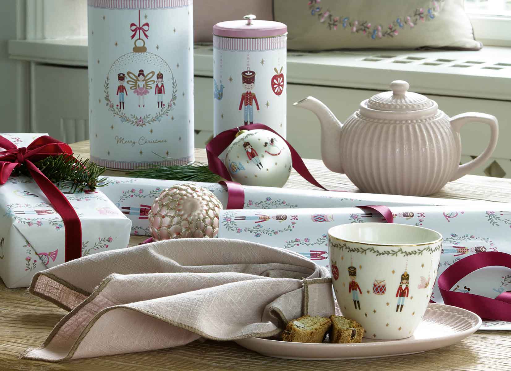Die GreenGate Cindarella Serie aus der aktuellen Herbst-Winter-Kollektion präsentiert eine warme und festliche Farbpalette, die perfekt zur Weihnachtszeit passt. Dominierende Farben wie Rot, Gold und Rosa schaffen eine festliche Atmosphäre. Die Muster sind inspiriert von klassischen Weihnachtsmotiven wie Nussknacker, Engel und Geschenke, die auf Geschirr und Dekorationsgegenständen abgebildet sind. Diese detailreichen und liebevoll gestalteten Designs verbinden traditionelle und verspielte Elemente, was eine nostalgische Stimmung erzeugt.