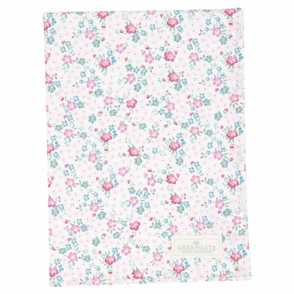 Dieses Geschirrtuch überzeugt durch ein zartes Blumenmuster in Rosa, Blau und Grün, das auf dem weißen Hintergrund besonders edel wirkt. Der dezente "GreenGate"-Logo-Patch verleiht einen stilvollen Markenakzent. Perfekt für romantische und shabby-chic Wohnstile!