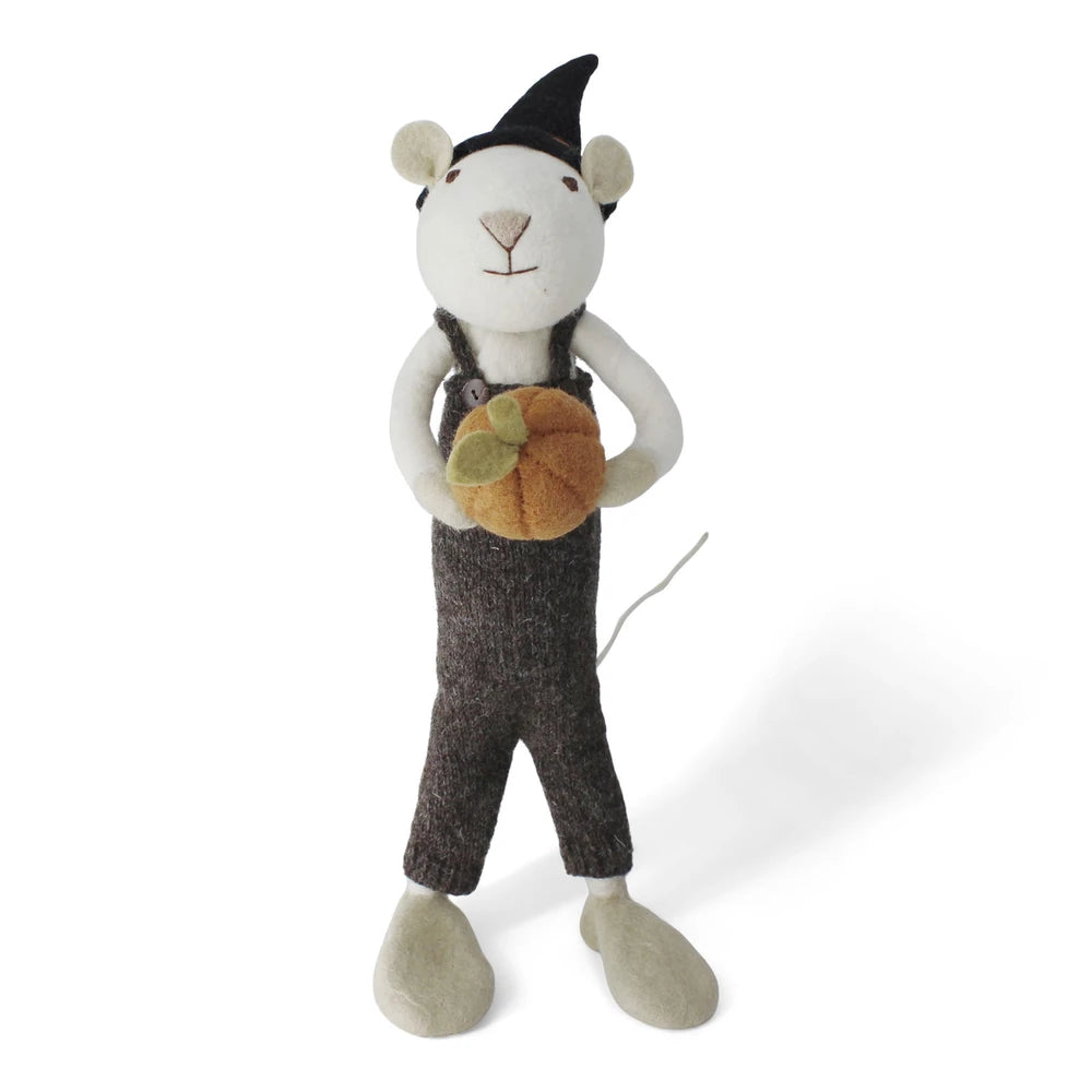 Gry & Sif - XL Weißer Jungen-Maus Filz mit Kürbis und brauner Hose