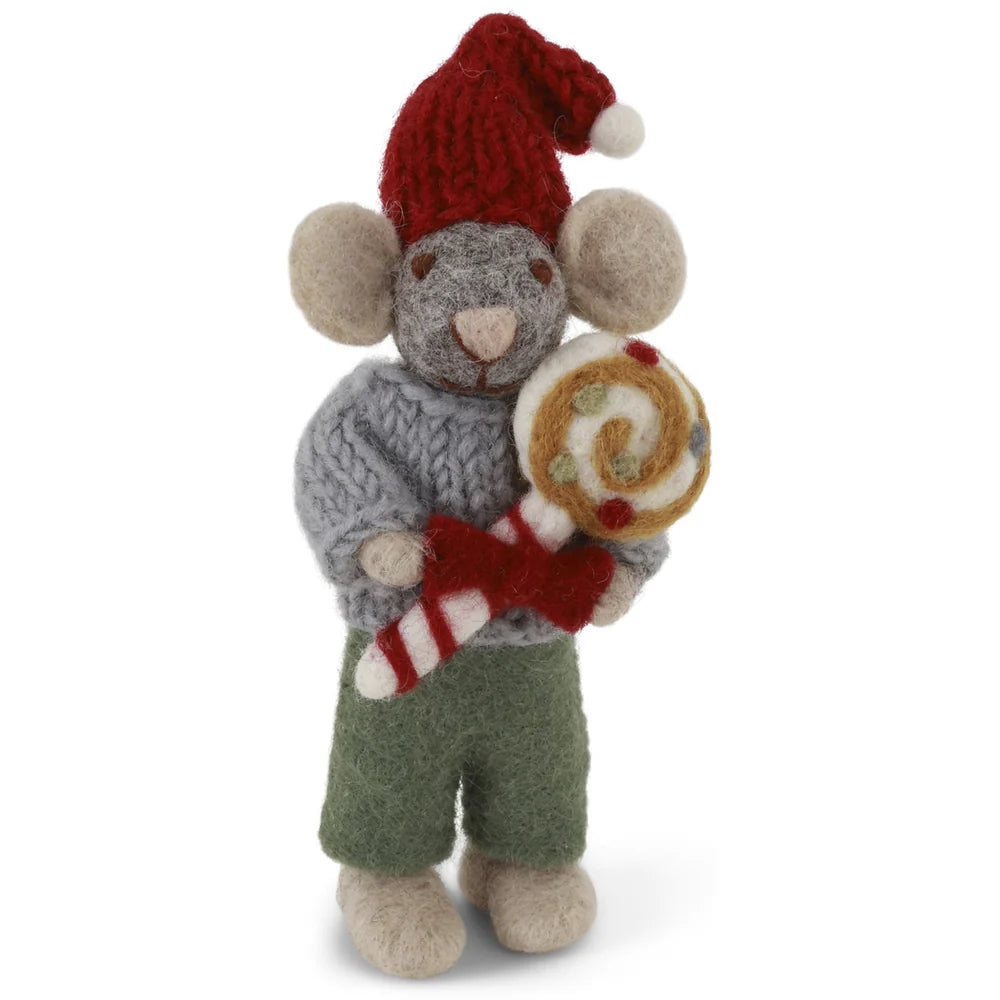 Gry & Sif – Große graue Jungenmaus mit Weihnachtszuckerstange