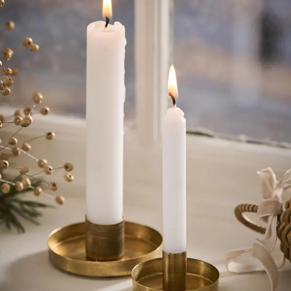 Mit diesem Kerzenhalter bringst du den sanften Glanz des Messings in dein Zuhause. Die schlichte runde Form und der goldene Farbton verleihen jedem Raum eine warme, gemütliche Atmosphäre. Er erinnert an gemeinsame Winterabende, wenn das flackernde Kerzenlicht Geschichten erzählt und die Familie zusammenrückt.