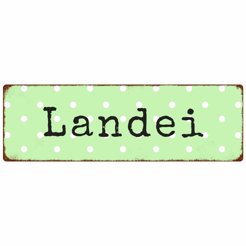 Dieses zauberhafte Metallschild sorgt garantiert für ein Schmunzeln. Die hellgrüne Grundfarbe mit weißen Tupfen versprüht einen Hauch von Nostalgie und Landhaus‑Charme, während der humorvolle Schriftzug „Landei“ liebevoll die Verbundenheit zum Landleben betont. Dank der kompakten Größe ist das Schild flexibel einsetzbar – ob an der Küchentür, am Hühnerstall oder als witziger Hingucker an deiner Pinnwand – überall zaubert es ein Lächeln.