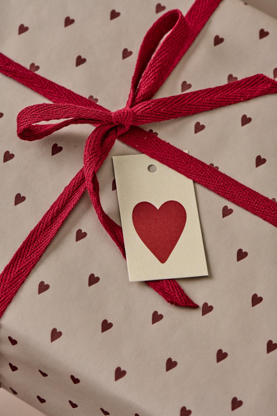 Dieses Geschenkpapier verleiht deinen Geschenken einen Hauch von Romantik und Nostalgie. Auf dem naturbraunen, recycelten Papier sind kleine rote Herzen gleichmäßig verteilt – ein schlichtes Muster, das dennoch sofort ins Auge fällt. Ob für Weihnachten, Geburtstage oder Valentinstag: Das dezente Design passt zu vielen Anlässen und sorgt für Freude beim Auspacken.