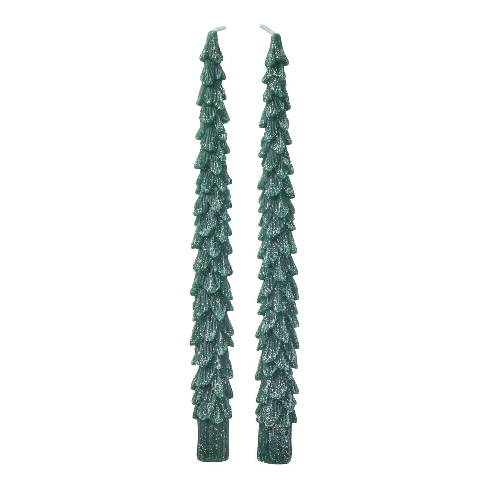 Diese Rice Stabkerzen in Tannenform bringen sofort festliche Stimmung in dein Zuhause! Mit ihrem dunklen Grün und dem sanften Glitzereffekt verzaubern sie jeden Raum und schaffen eine kuschelige, weihnachtliche Atmosphäre – ideal für einen Filmabend mit heißer Schokolade.