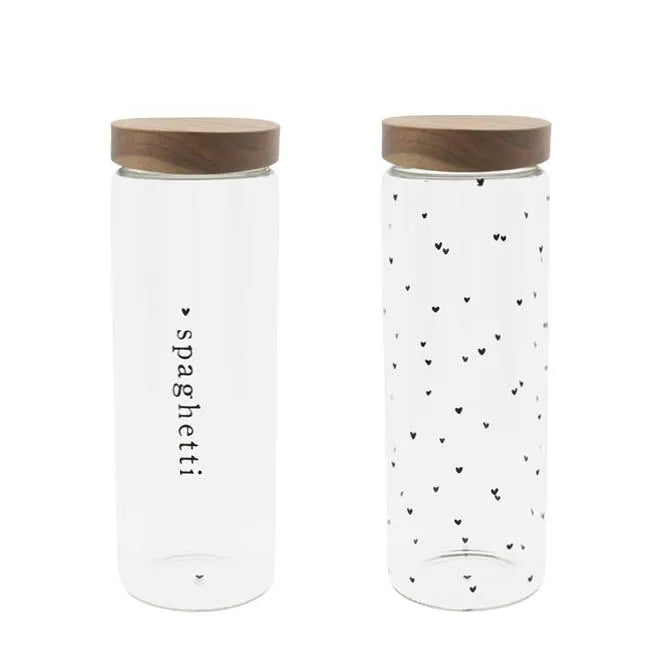 Bastion Collections - Vorratsglas Spaghetti mit Holzdeckel & Herz-Muster XL