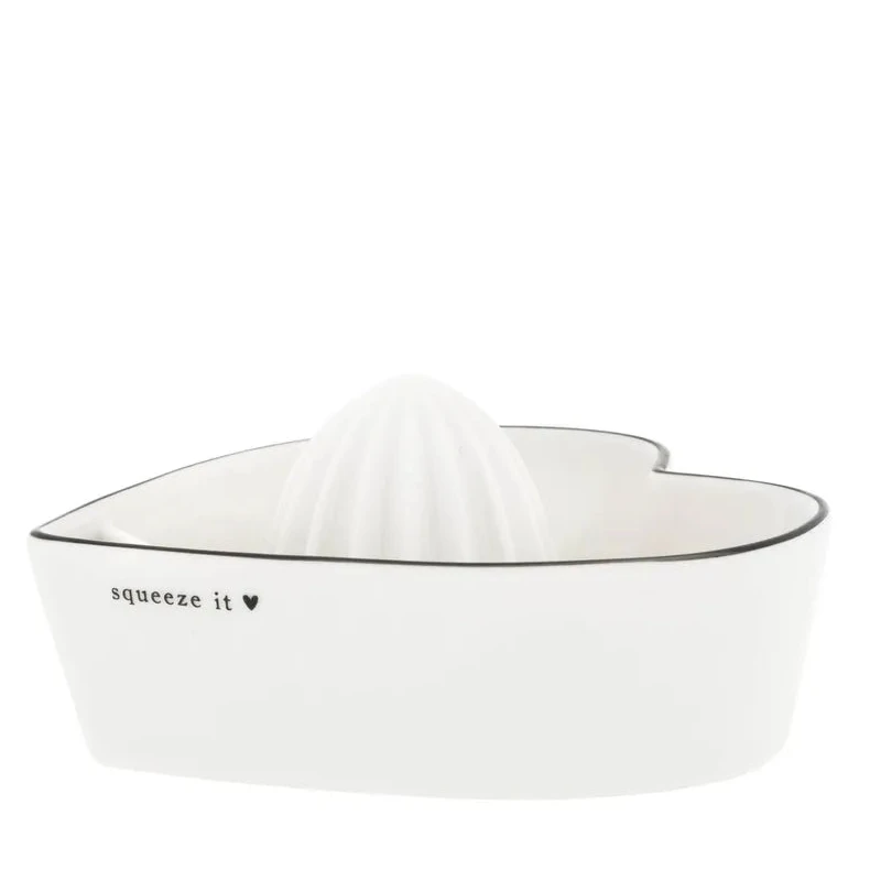 Sauer macht lustig – und mit dieser bezaubernden Zitronenpresse auch noch verliebt! ♥ Die herzförmige Presse von Bastion Collections bringt mit ihrem klaren Design in Weiß und dem verspielten „squeeze it“-Schriftzug pure nordische Leichtigkeit in deine Küche. Ob für das frische Dressing oder die heiße Zitrone am Morgen: Mit diesem Küchenhelfer wird das Auspressen zur Herzensangelegenheit.