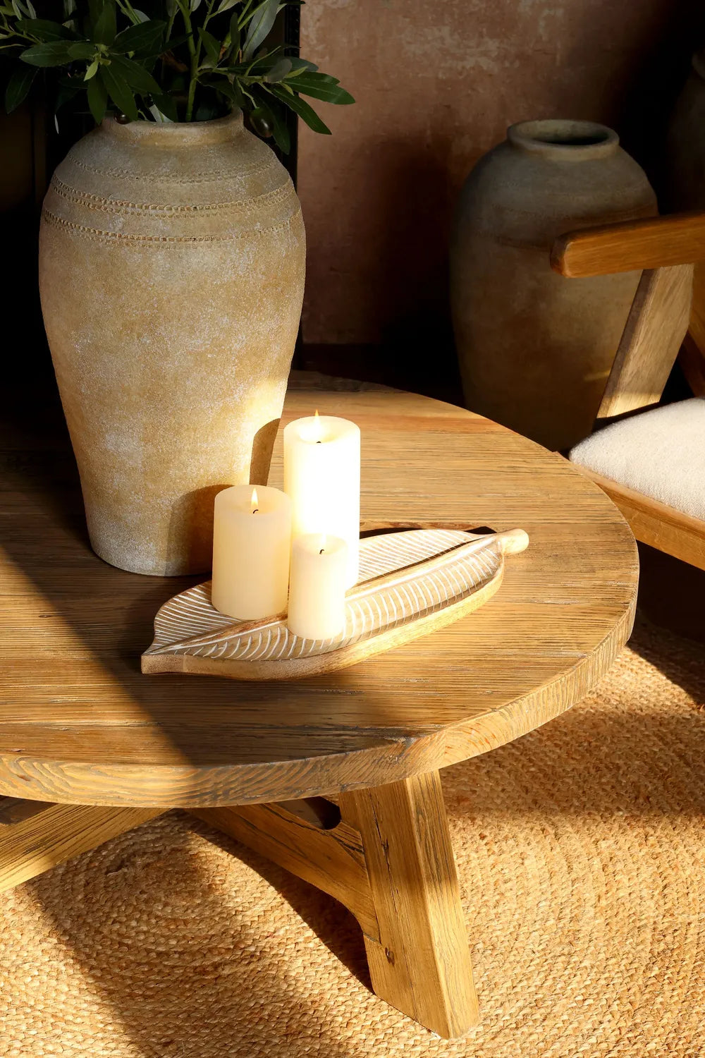 Dieses wunderschöne Serviertablett in Blattform bringt den Charme der Natur direkt auf deinen Esstisch. Gefertigt aus robustem Mangoholz, besticht das Prachtexemplar von Chic Antique durch seine lebendige Maserung und die kunstvollen Schnitzereien ♥. Ob für das knusprige Baguette zum Abendbrot oder als dekorativer Hingucker – hier trifft rustikale Gemütlichkeit auf nordische Eleganz.