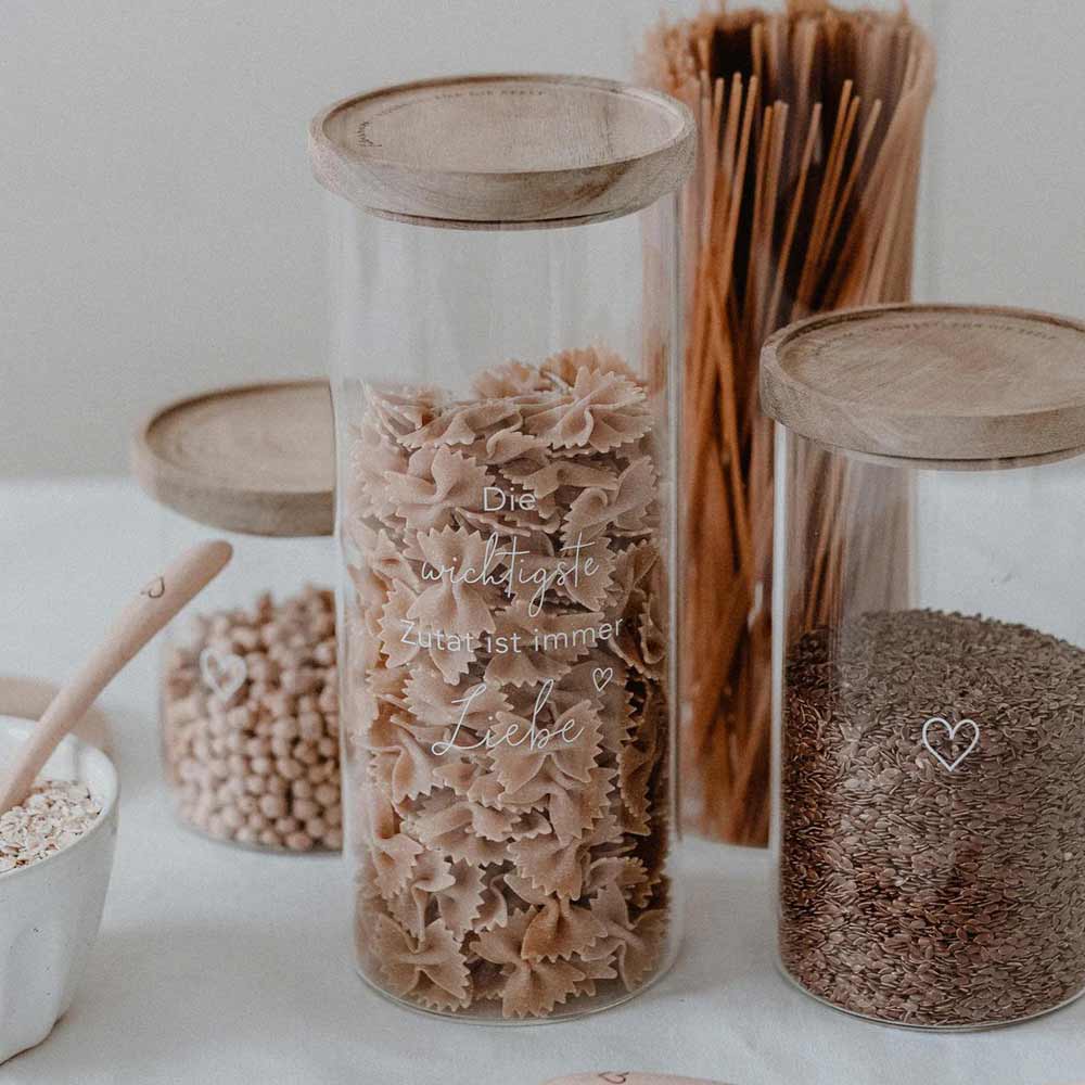 Schöne Aufbewahrung sorgt im offenen Regal für Furore und wird zum Hingucker, den kein Blick nur streift. Auf diese Art wird Aufbewahrung nicht nur zum praktischen Ordnungshelfer, der deine Lebensmittel schützt. Sondern auch zum feschen Herzeige-Accessoire und zum dekorativen Wohngefährten.