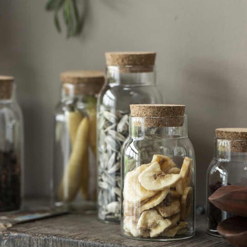 Bestens aufgehoben und verstaut: Ist eine Packung Nüsse beispielsweise erst aufgerissen, pack die Nüsse in ein Vorratsglas. So purzeln keine offenen Verpackungen in deinen Küchenschränken herum.