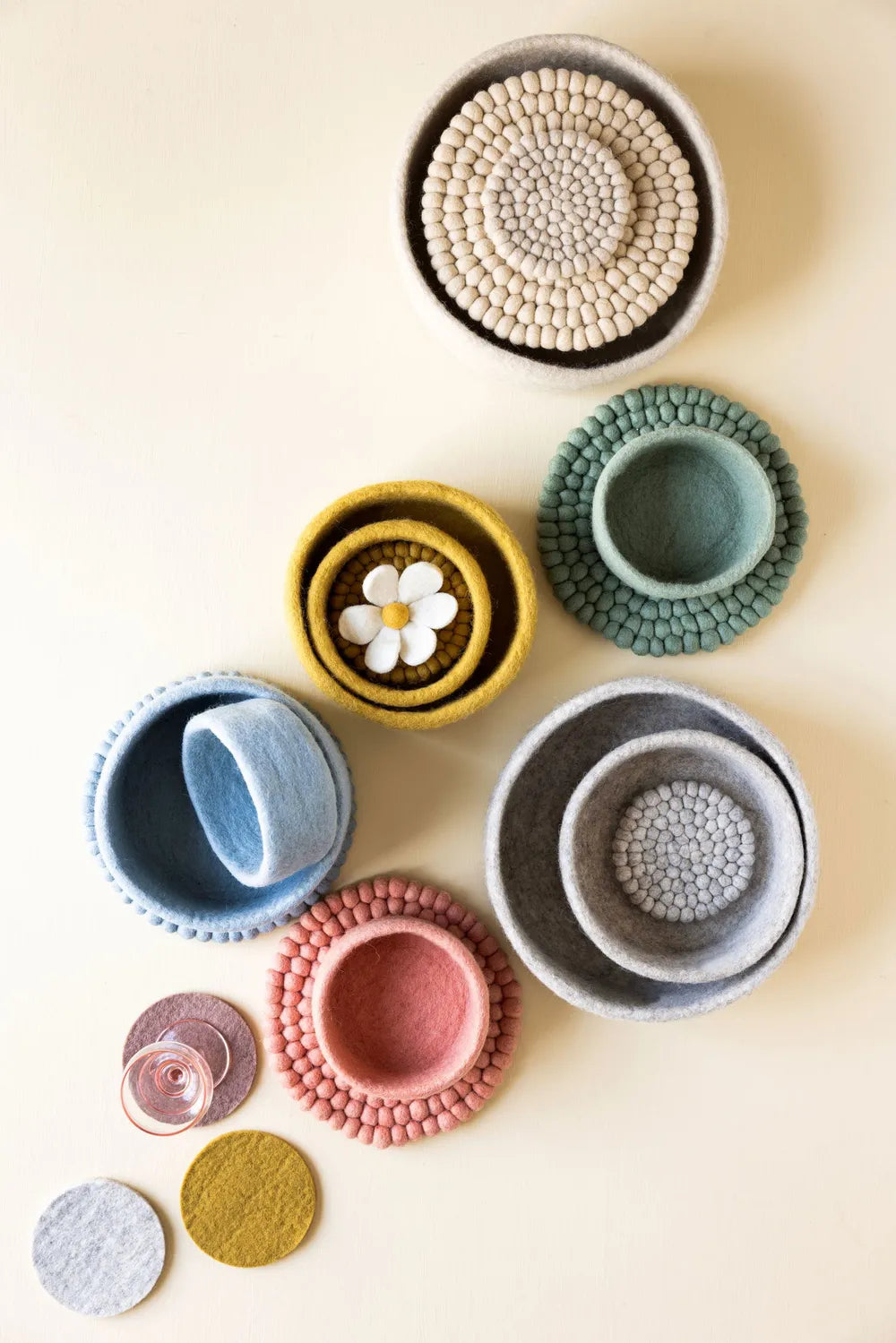 Hol dir nordische Leichtigkeit nach Hause mit diesem wunderbaren Schalen-Set in sanftem Hellblau. Die drei ineinanderpassenden Filzkörbe vereinen praktischen Nutzen mit zeitlosem Design und sorgen ruckzuck für stilvolle Ordnung ♥. Ob für Accessoires, Garn oder einfach als Deko – hier trifft echte Handwerkskunst auf pures Hygge-Gefühl.