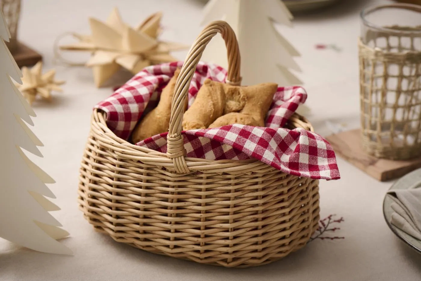 Drapiere ein kleines Leinentuch hinein und fülle den Korb mit frischen Äpfeln oder Nüssen – so zauberst du ruckzuck eine einladende Atmosphäre auf den Esstisch.