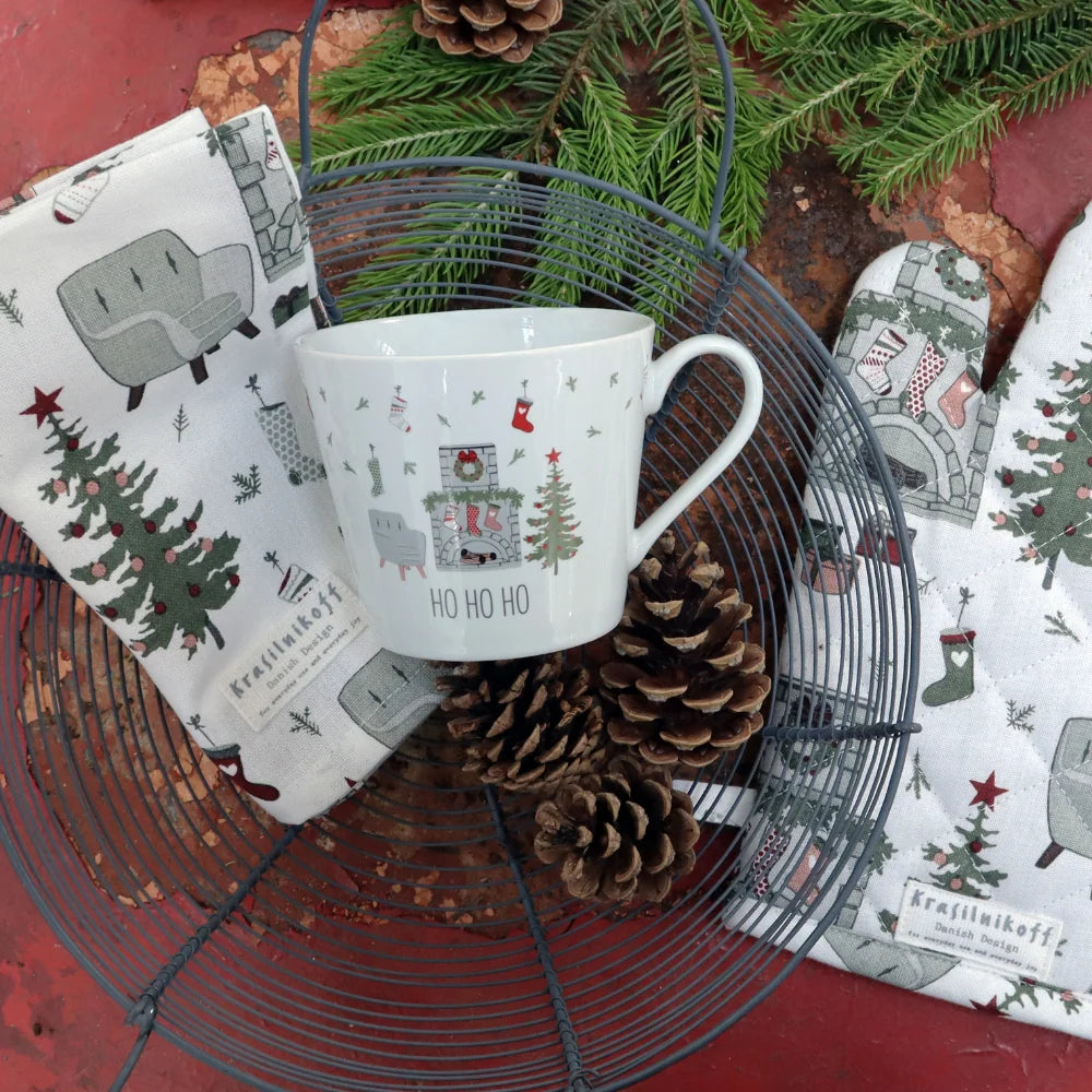 Dieses Geschirrtuch erzählt eine kleine Weihnachtsgeschichte: ein knisterndes Kaminfeuer, ein liebevoll geschmückter Baum und Geschenke warten auf dich. Die weiche Baumwolle lädt zum Träumen ein.