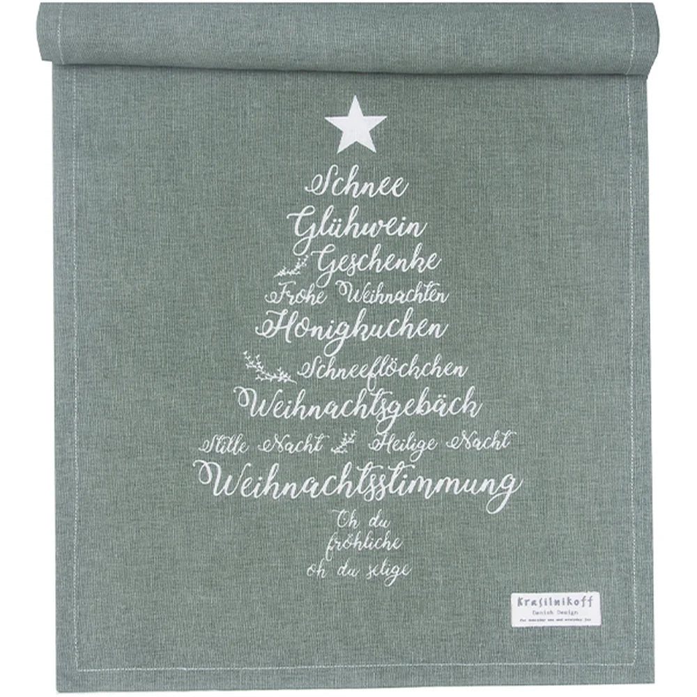 Krasilnikoff - Tischläufer Christmas Words Olive Green
