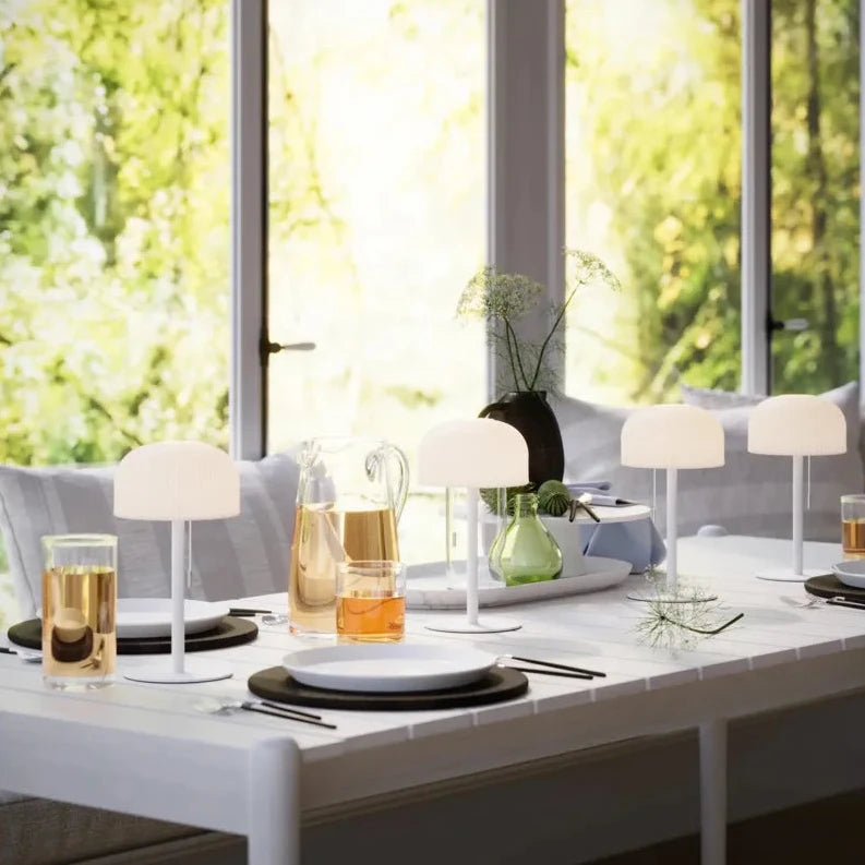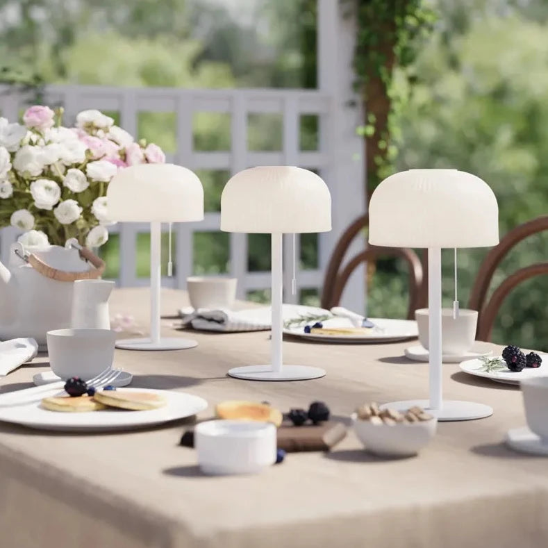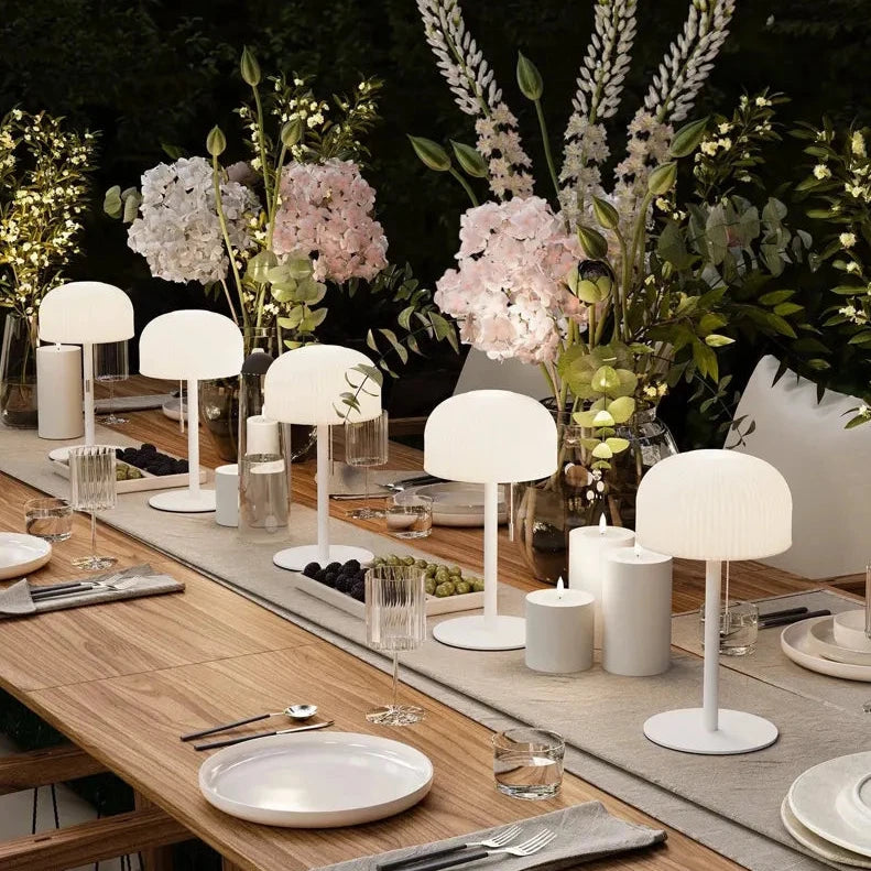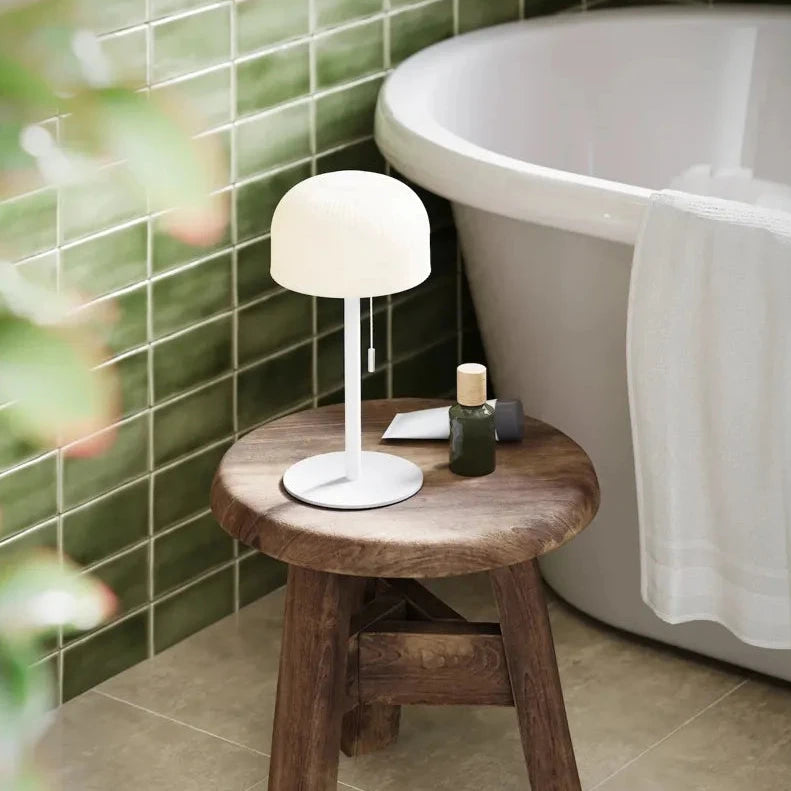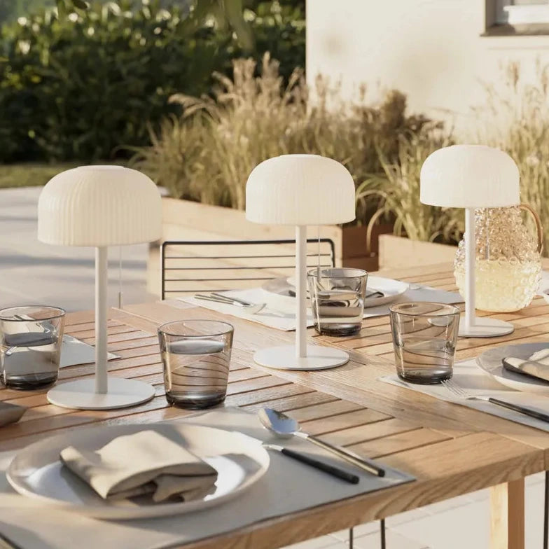 Mit ihrer eleganten, geriffelten Form erinnert diese Tischlampe an nordisches Design: klar, zeitlos und hyggelig. Der weiße Lampenschirm aus stabilem Kunststoff sitzt auf einem schlanken Eisenfuß und spendet ein warmes, sanftes Licht – ideal für gemütliche Abende oder als stilvoller Akzent auf dem Sideboard.