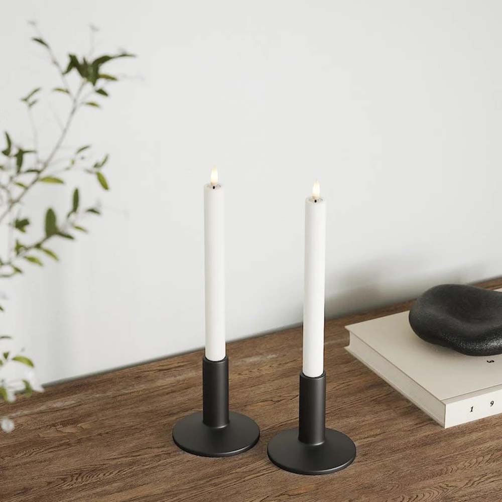 Setze die Kerzen paarweise in schwarze oder messingfarbene Kerzenhalter, um Kontraste zu schaffen. Auf dem Esstisch, der Fensterbank oder im Flur erzeugen sie ein gemütliches, einladendes Ambiente – perfekt für Familienabende, Dinnerpartys oder einfach für Deinen Feierabend.