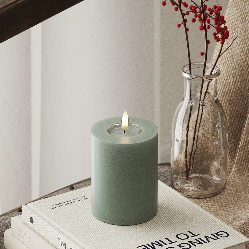 Deko‑Tipp: Kombiniere diese Salbeigrüne LED‑Blockkerze mit Naturmaterialien wie Holz, Leinen oder Tannenzapfen, um einen harmonischen Look zu schaffen.