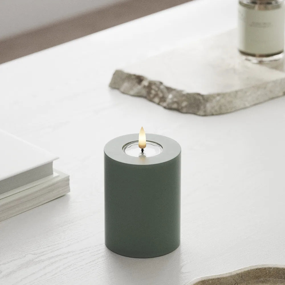 Diese Salbeigrüne LED‑Blockkerze bringt skandinavische Gemütlichkeit in dein Zuhause. Dank der patentierten Real‑Flame‑Technologie wirkt die Flamme täuschend echt und sorgt für warme Stunden ohne Ruß oder Brandgefahr.